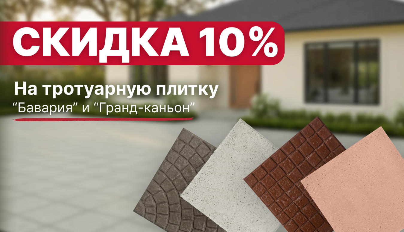 С 16 декабря 2025 года на тротуарные плиты "Бавария" и "Гранд каньон" действует скидка 10%! Цены на сайте указаны без учета скидок.